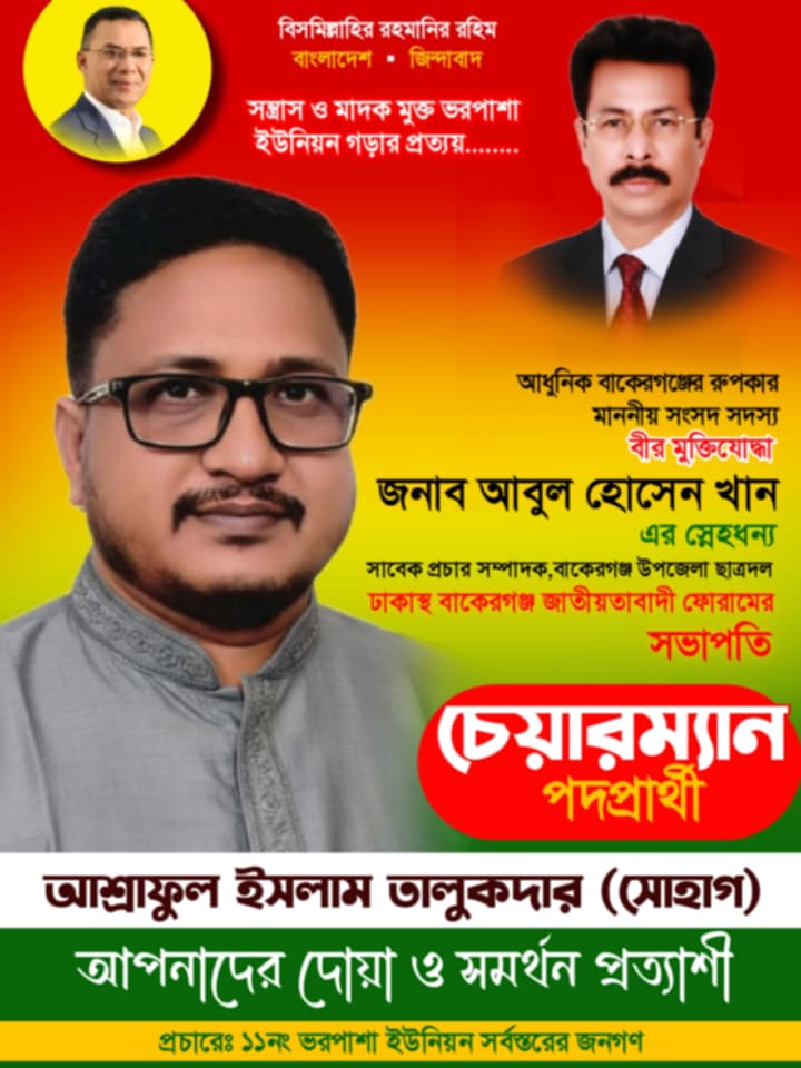 আশরাফুল ইসলাম তালুকদার সোহাগ: ১১ নং ভরপাশা ইউনিয়নের জন্য উন্নয়নমুখী নেতৃত্বের অঙ্গীকার