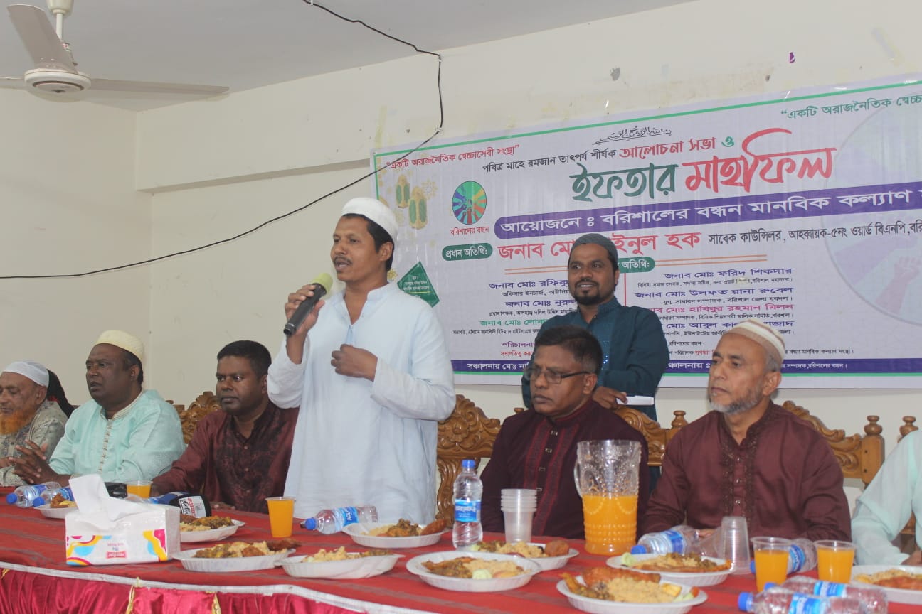 রিয়াজ শরীফ,বরিশাল:- বরিশালের অরাজনৈতিক স্বেচ্ছাসেবী সংগঠন বরিশালের বন্ধন মানবিক কল্যাণ সংস্থা কর্তৃক ইফতার ও দোয়া মাহিফিলের আয়োজন করা হয়।