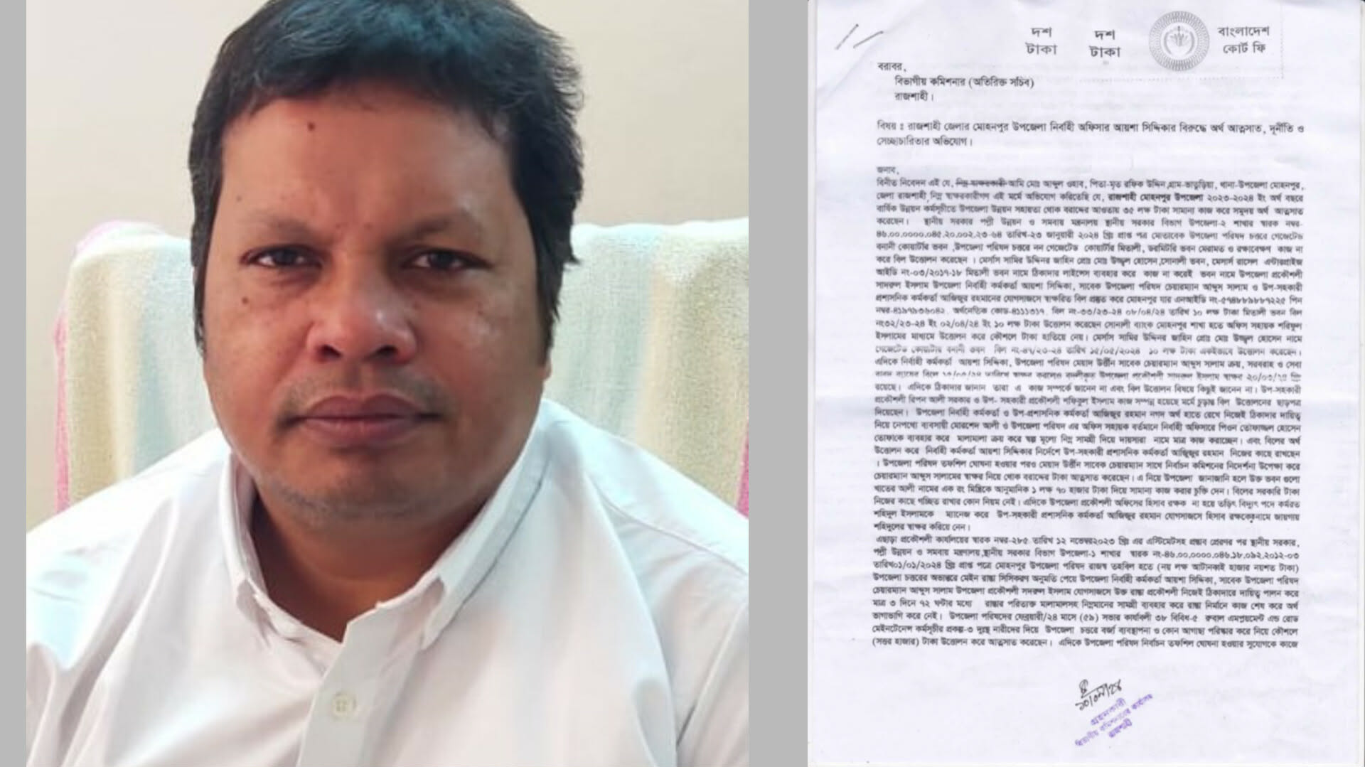 জানা গেছে, ২০২৪ সালের ১০ জুন ভাতুড়িয়া গ্রামের আব্দুল ওহাব নামের এক ব্যক্তি জেলা প্রশাসক ও বিভাগীয় কমিশনার বরাবর সাদরুল ইসলামের বিরুদ্ধে লিখিত অভিযোগ দায়ের করেন।